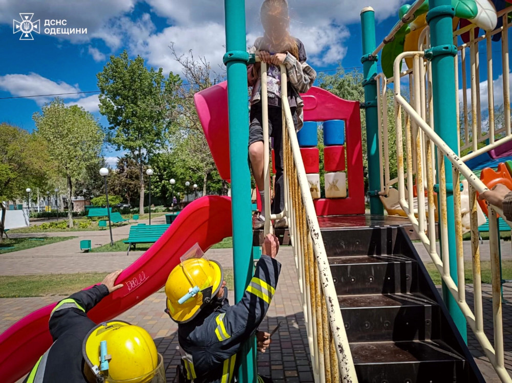 На детской площадке в Килии произошел необычный инцидент. Играя, девятилетняя девочка решила попробовать просунуть ногу между металлическими конструкциями горки, но не смогла самостоятельно ее вытащить.