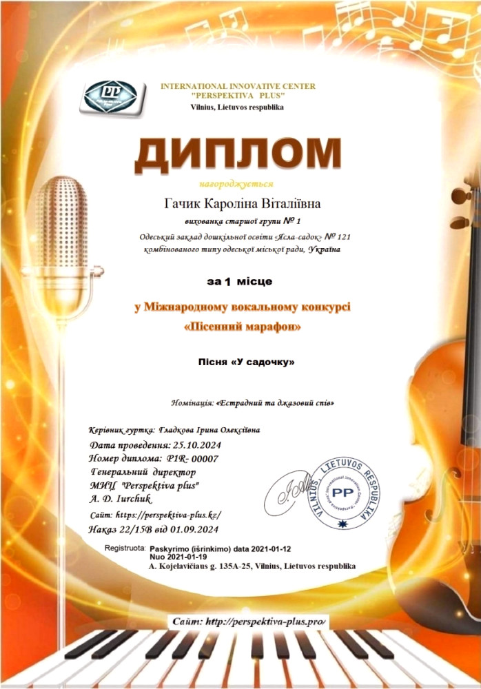 - «Пісенний марафон» у категорії «Дошкільнята», у номінації «Естрадний та джазовий спів» - Дошкільний заклад освіти «Ясла-садок» № 121 комбінованого типу.
