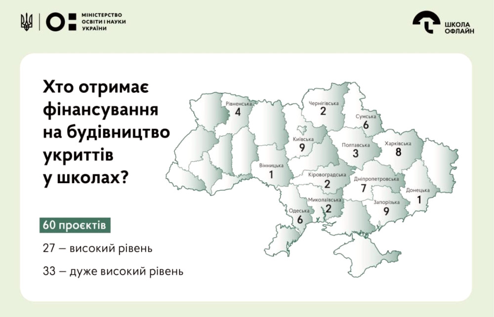 Уряд виділив кошти на 60 проектів для облаштування укриттів у навчальних закладах, включаючи Одесу.