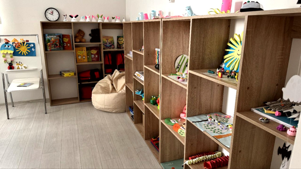 Центр забезпечений кімнатами для проживання, кабінетом психолога, дитячими зонами для навчання та відпочинку, а також пральнями, кухнею, їдальнею та актовою залою.